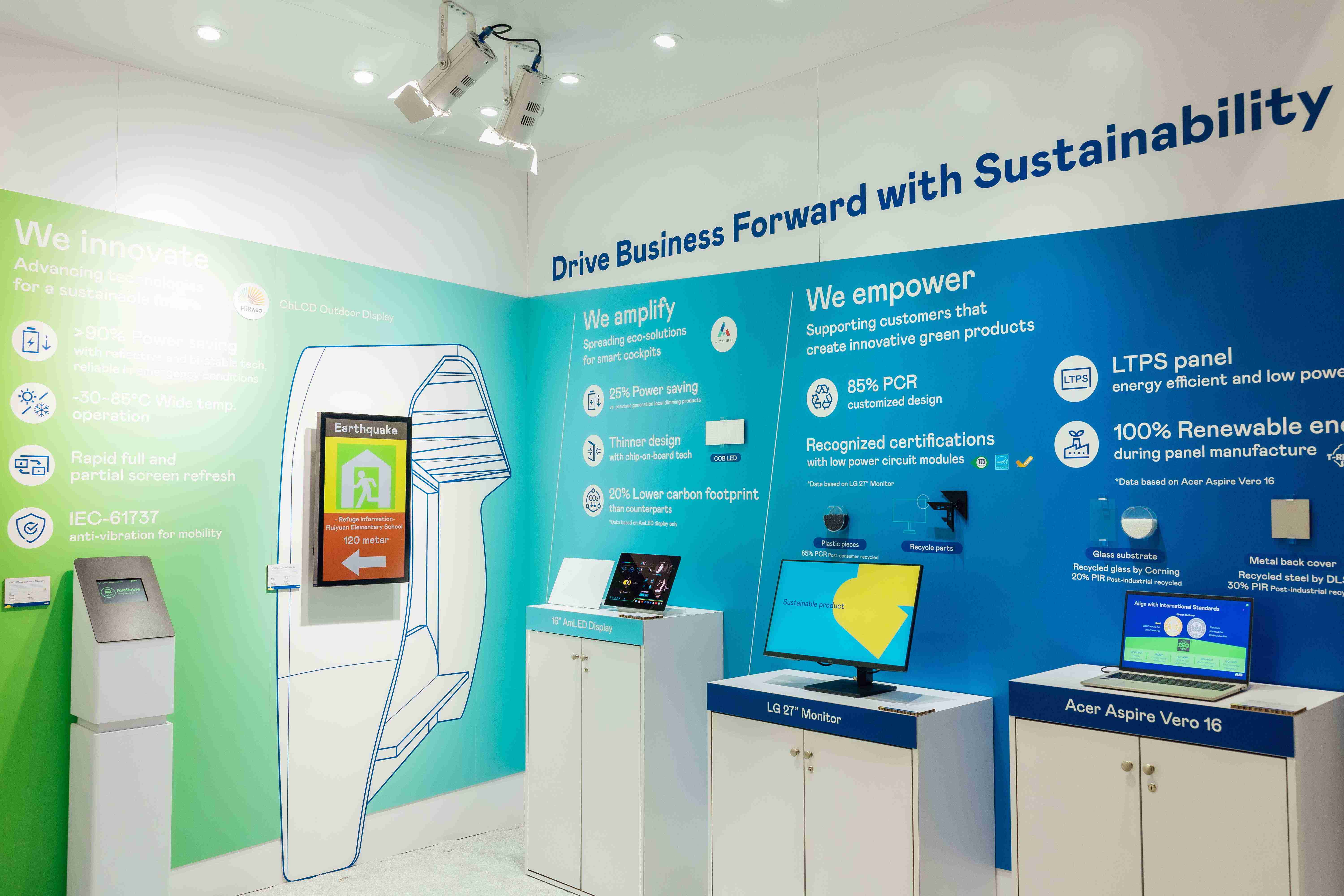尊龙集团运用创新显示技术HiRaso胆固醇液晶双稳态技术达到显示零耗能、、、扩大节能省电的AmLED显示技术应用于车用产品、、、、以再生的消费后回收(PCR)塑料及全绿电生产之面板,,应用于笔电及萤幕,,,,增加绿色价值。。。。