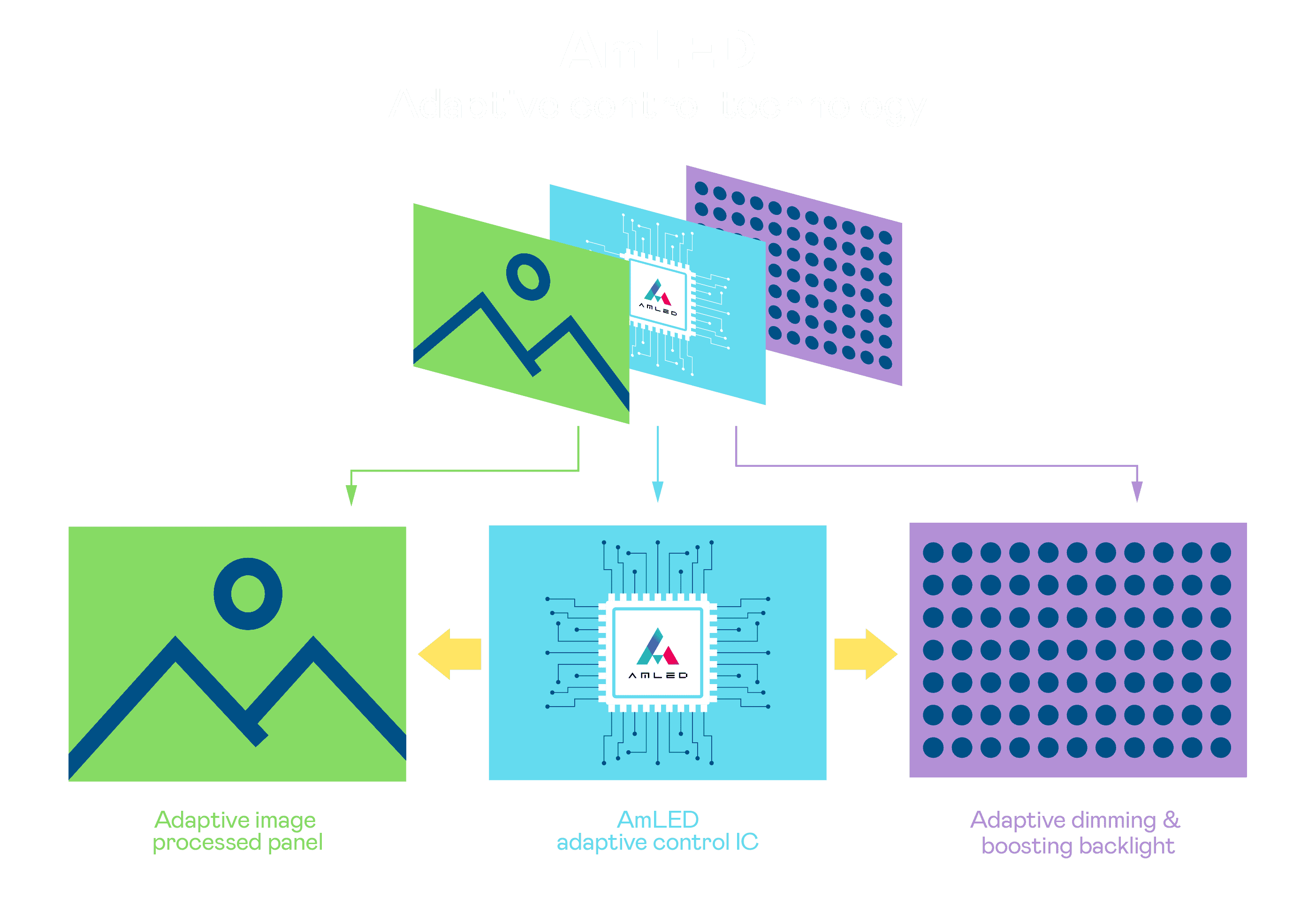 透过动态影像处理和 Mini LED 背光模组的动态对比及峰值亮度调变,,,AmLED 显示技术精准细致的局部调光效果达到超过 1,000 nits 的超高亮度表现,,,,亮部更明亮、、暗处更深邃,,,,呈现真实黑色中的亮度以及平滑灰阶,,,,打造出具层次分明的精致光影细节。。